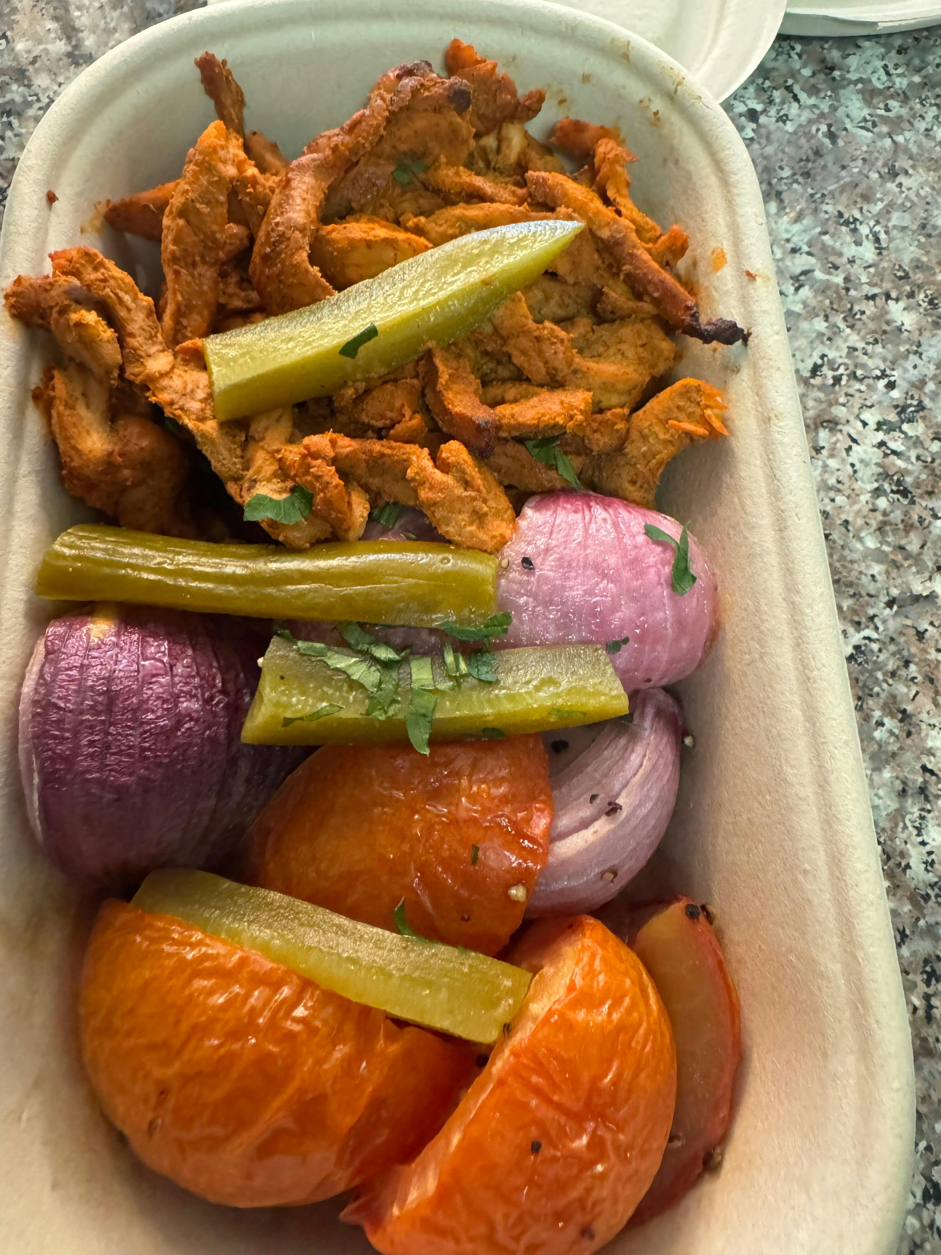 Chicken, Chickpeas, Tahini, Yoghurt, Pickles, Garlic, Red Onions, Tomatoes, Lemon Juice, Lemon Salt, White Vinegar, Black Pepper, Paprika, Ginger, Cardamom, Coriander, Cumin, EVOO, Salt, Pepper
